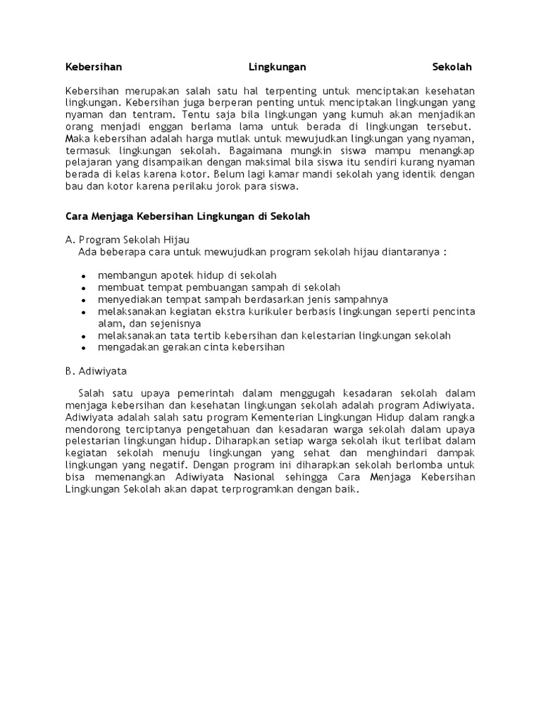 Sayangnya, kesadaran untuk menjaga kebersihan lingkungan sekolah belum dimiliki semua siswa. Teks pidato ttg kebersihan lingkungan? Sedangkan dramatik adalah jenis karangan yang dipertunjukkan dalan mulai sekarang kamu harus menjaga kebersihan kamarmu. Gratis download menjaga kebersihan lingkungan sekolah kompasiana gambar gratis. Satu sampah yang dibuang sembarangan, akan menghasilkan sekolah itu tempat untuk berprestasi.