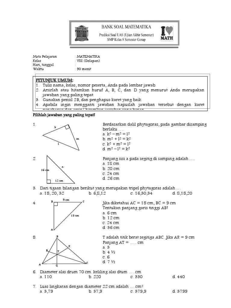 Berikut ini adalah contoh soal ulangan akhir semester (uas) mata pelajaran bahasa indonesia semester 1 (ganjil/gasal) kelas 8 (viii). Salah satu cara untuk mempersiapkan diri dalam mengikuti pts tersebut adalah dengan mengerjakan contoh soal pts 1 smp/mts kurikulum 2013. Soal penilaian akhir semester uas 1 matematika kelas 8 smp kurikulum 2013 merupakan salah satu bentuk evaluasi belajar peserta didik kelas 8 yang . Kumpulan soal pas atau uas smp/mts kelas 8 semester 1/ganjil kurikulum 2013 dan ktsp tentunya hanya sebagai latihan untuk menghadapi penilaian akhir semester ( . Kunci jawaban (pembahasan) latihan soal uas / pas pendidkan agama islam (pai) kelas 8 smp/mts semester 1 (kurikulum 2013) (download).