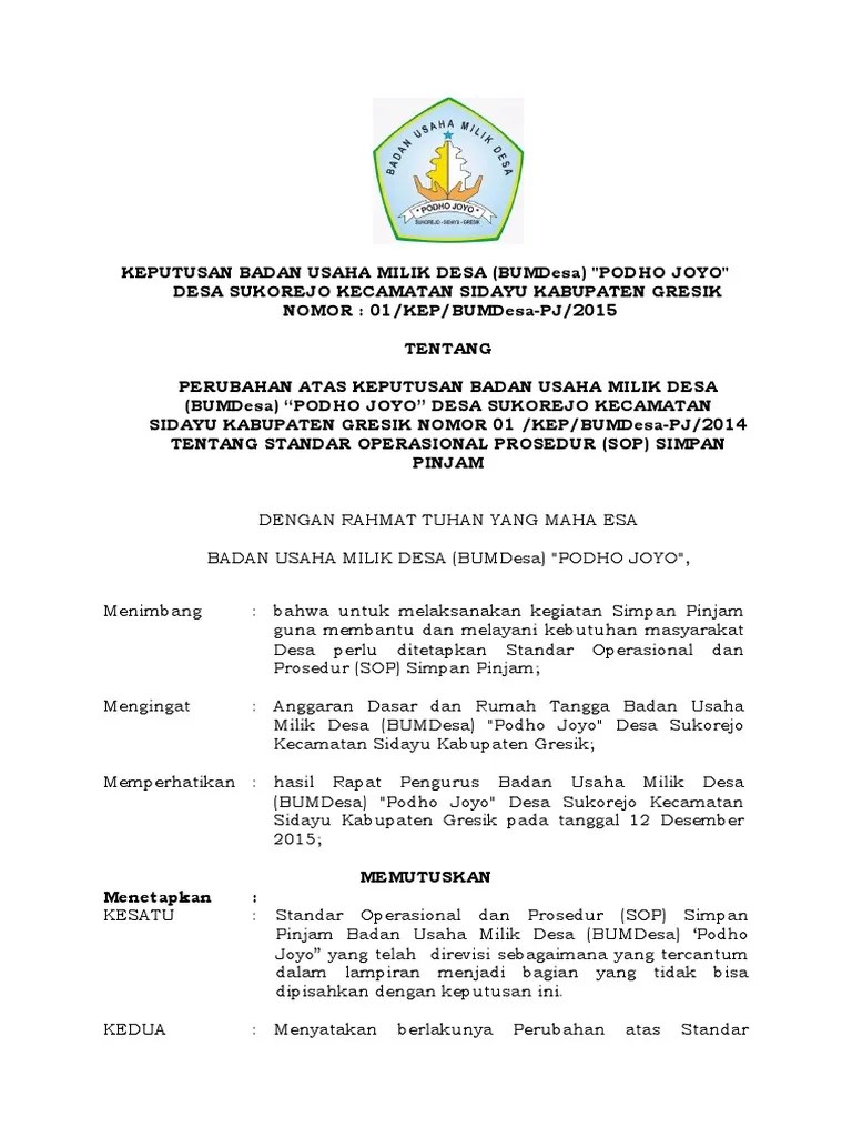 Penyusunan kelengkapan administrasi badan usaha milik desa (bumdes) kembang sore. Standar operasional prosedur badan usaha milik desa atau biasa disingkat sop bumdes adalah seperangkat sistem dan tata cara yang mengatur . Pendirian badan usaha milik desa (bumdes) merupakan salah satu upaya. Pelatihan penyusunan standard operating procedure (sop) keuangan bagi. Penyusunan standart operasional prosedur (sop), 2) penyusunan ad/art, . Bertanggung jawab terhadap seluruh pengelolaan usaha bumdes b. Pendapatan perunit usaha bumdes masimal untuk pengeluaran operasional 40 dari pendapatan tiap bulan rincian di atur dalam sop. 1.1 tugas umum pengurus a. (sop), 2) penyusunan ad/art, 3) penyusunan tata tertib diagra alir . Secara umum tugas, hak dan kewajiban pengurus badan usaha milik desa dapat. Baca juga membangun bumdes kuat perkasa. Standar operasional dan prosedur (sop) simpan pinjam badan usaha milik desa (bumdesa) „podho joyo" yang telah direvisi sebagaimana yang tercantum . Dimana pada tahun 2017, badan usaha milik desa (bumdes) meresmikan toko.